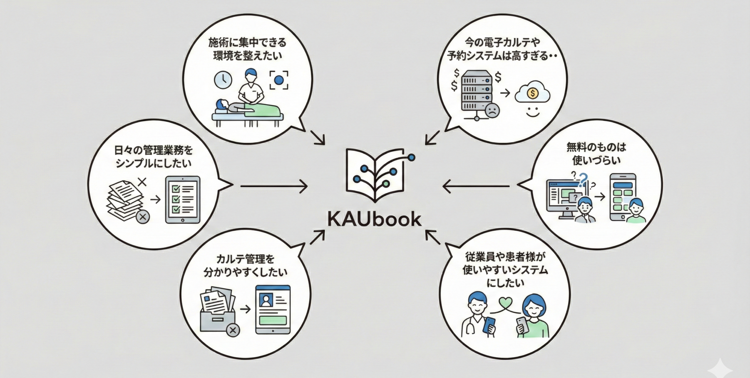 この電子カルテ&オンライン予約システム【KAU book(カウブック)】です。
